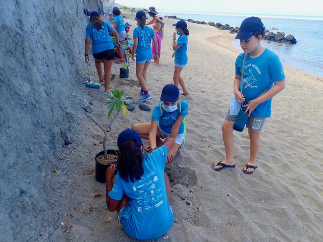 Des élèves de l'école de Saint-Leu centre étaient à la plage ce lundi matin 8 février 2021. Il ne s'agissait pas de prendre un bain mais de planter 15 veloutiers (un arbre poussant en bord de er) fournis par Kelonia, (centre d'observation des tortues marines). "Avant d'aller planter les arbres les enfants ont rappelé les objectifs de cette opération : embellir la plage, et à terme des zones ombragées, lutter contre l'érosion en retenant le sable, réduire l'impact de nuisances sonores et lumineuses, favoriser les pontes de tortues" énumère Kélonia. Le projet est soutenu par la mairie de Saint-Leu (Photo Kélonia)