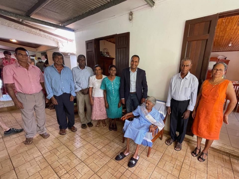 Antoinette Ellama a fêté ses 100 ans ce dimanche 6 mars 2022. A cette occasion le maire Bruno Domen accompagné de plusieurs élus se sont rendus chez elle pour lui adresser des voeux de bohneur et féliciter sa famille. Reconnue pour son courage, ses proches sont venus la féliciter et la remercier tout simplement. Antoinette Ellama a eu 9 enfants, qui à leur tour, ont donné la vie à 11 petits-enfants, et 5 arrière petits-enfants, indique la ville dont nous publions le communiqué ci-dessous. (Photos ville de Saint-Leu)