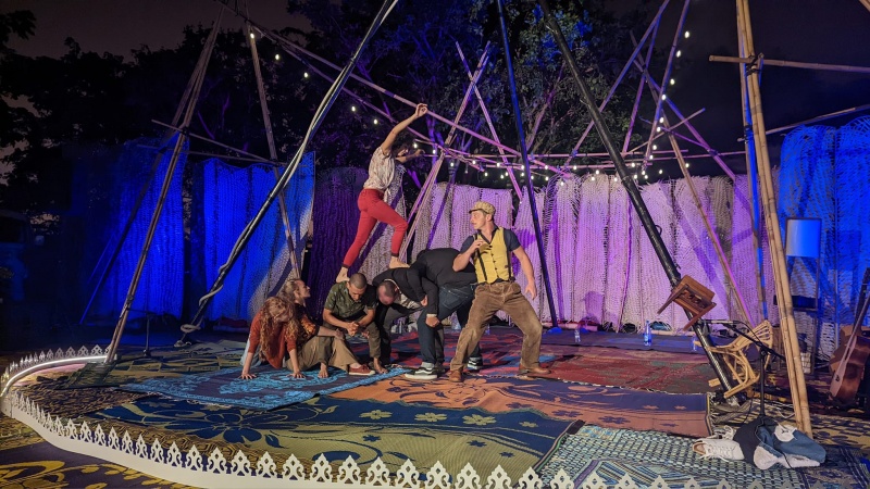 Cette année, la troupe éphémère constituée pour l’occasion a fait appel à de jeunes artistes. Parmi eux : Lola Bonnecarrère et Pierre-Armand Malet, membre de la compagnie Aberash (théâtre) ; Emilie Smith et Eric Maufrois, cofondateurs de la compagnie de cirque Très-d’Union ; de Margreet Martina Nuijten, circassienne et musicienne ; et, Romuald Solesse, magicien qui travaille entre autres, avec la compagnie Cirquons Flex. En fil rouge musical de chaque soirée, on retrouvera Arno Bazin.
