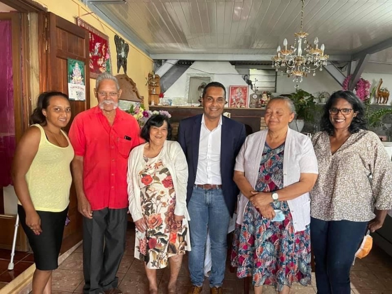 Lucie et Rosaire Ellaya ont célébré leur 50ème année d'union aujourd'hui à Grand-Fond. Un anniversaire de mariage qui, en présence du maire Bruno Domen, des élues Marie Alexandre et Armande Permalnaïck, s'est déroulé dans l'intimité de leur case où l'on pouvait ressentir l'engouement de gens passionnés. Nous publions ici le communiqué de la ville de Saint-Leu (Photo : ville de Saint-Leu)
