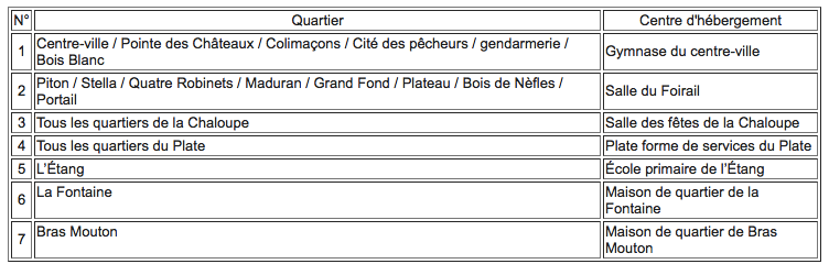 Les centres d’hébergement sur l’ensemble de la Commune ouvriront en fonction de l’évolution de la situation. Veuillez retrouver ci-dessous les adresses en fonction de votre quartier.