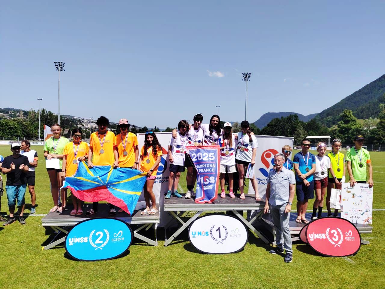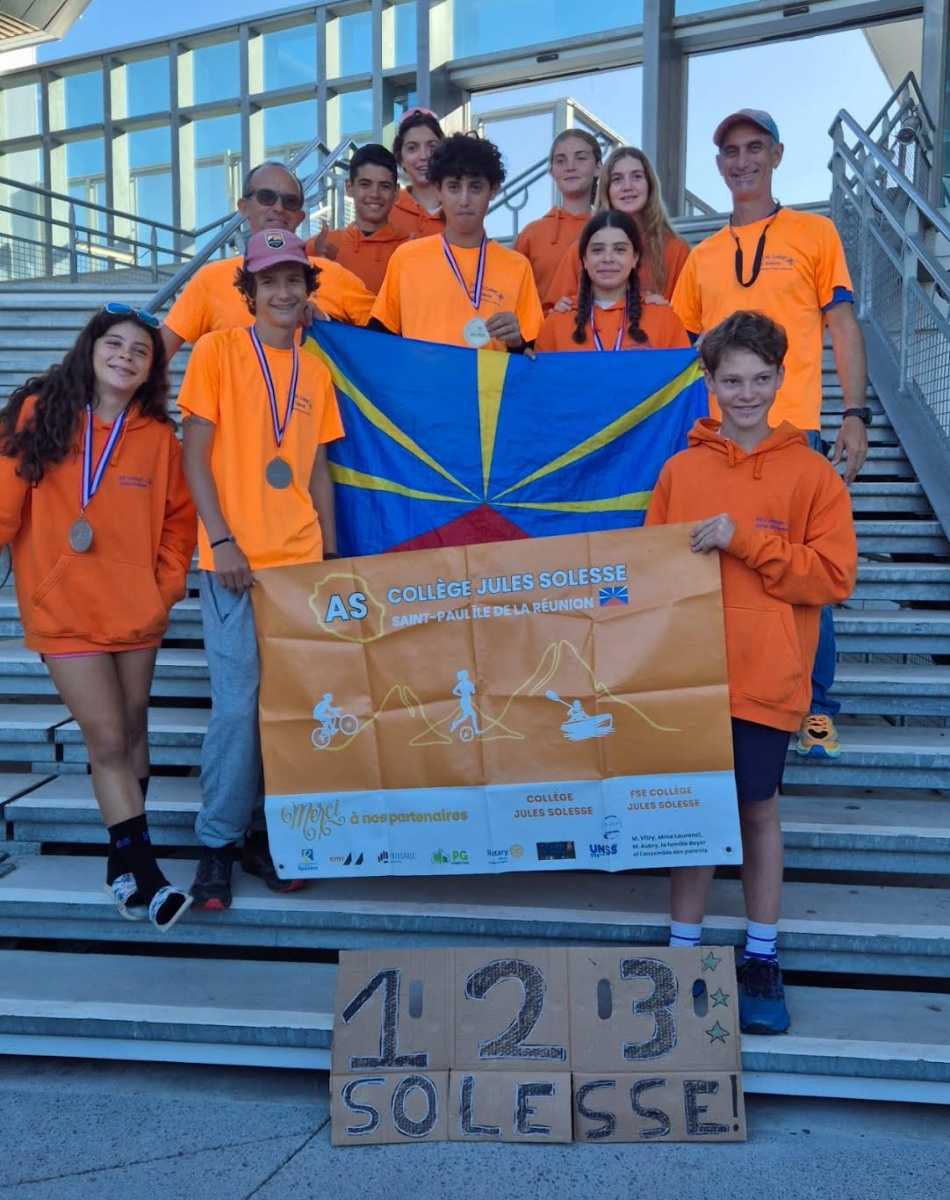 Les sœurs jumelles Sorelle et Tessa Bernard - Boyer, Benjamin Pascual et Lucas Millot du collège Jules Solesse (Saint-Paul) ont empoché la médaille d'argent du raid UNSS (Union nationale du sport scolaire) qui s'est tenu du mardi 10 juin au jeudi 12 juin 2025 à Mende en Lozère. Pour sa part , Suzanne Mullon a obtenu brillamment son diplôme de jeune officielle de niveau national (Photo D.R.)