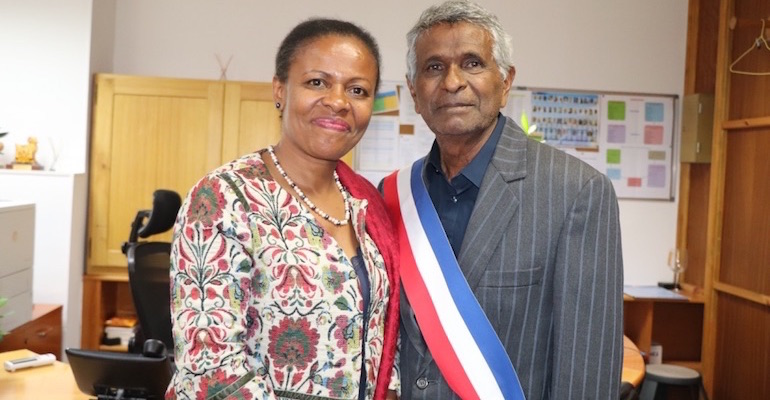 Anchya Bamana, la maire de la ville de Sada dans l'île mahoraise, rencontrait Joseph Sinimalé, le premier magistrat de Saint-Paul, le mercredi 7 novembre 2018 à la mairie saint-pauloise. L'élue, également présidente de l'Union départementale des centres communaux d'action sociale à Mayotte, venait lui rendre une visite de courtoisie. Comme en témoigne la photographie prise à cette occasion. Ces deux élus échangeaient notamment sur les problématiques sociales de leur département respectif.