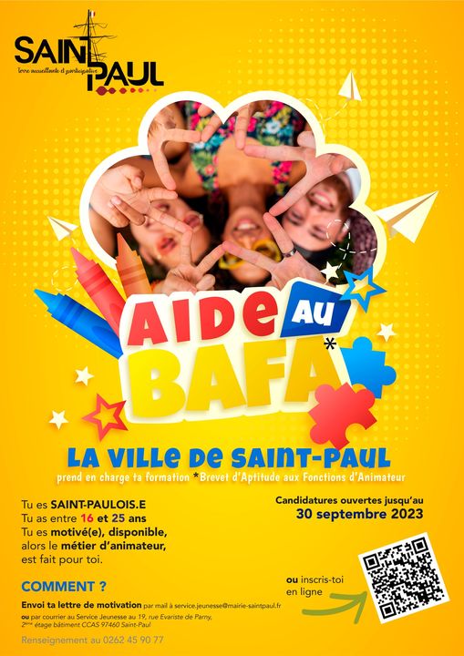 Vous pouvez vous inscrire en ligne ici, par mail service.jeunesse@mairie-saintpaul.fr ou par courrier adressée au Service Jeunesse : 19, rue Evariste de Party, 2ème étage du bâtiment CCAS Saint-Paul