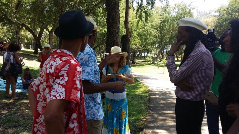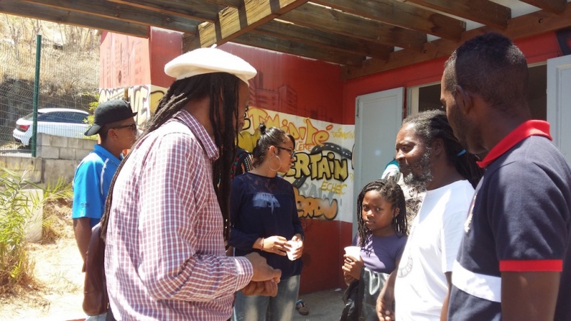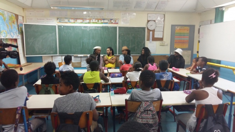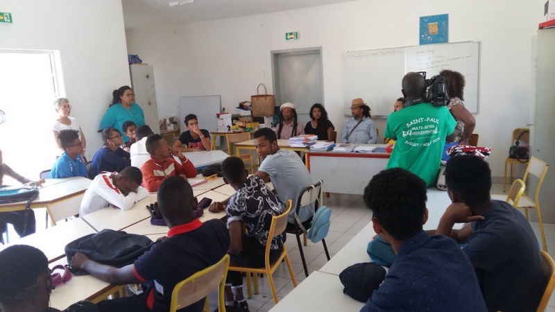 Les Sud africains, artistes engagés pour la paix dans le monde, venus pour dans le cadre de la fête koko, sont allés à la rencontre des jeunes saint-paulois toute cette journée. Un programme chargé en émotion : rencontre avec les petits écoliers de l’école Daly Eraya de la Grande Fontaine, puis les jeunes en décrochage scolaire avec l’association Prépafocal et les animateurs de l’Atelier Relais à Plateau Caillou, pour ensuite rencontrer les jeunes de l’école de la deuxième chance à la Grotte des Premiers Français. Et pour finir, une visite à la prison de Domenjod, pour échanger avec les mineurs incarcérés.