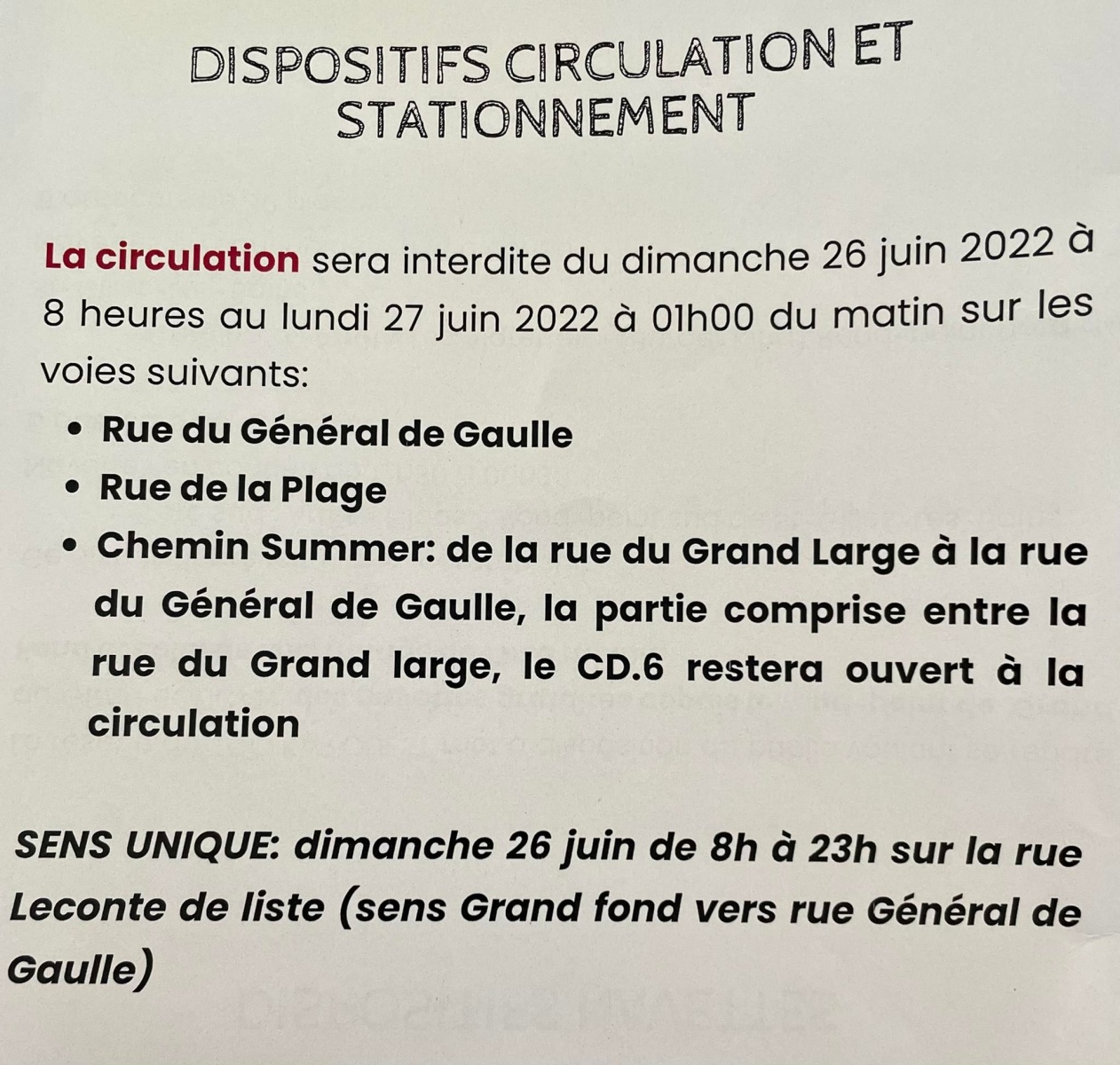 De 8h le dimanche au lundi 1h du matin : plusieurs axes seront fermés comme la rue Général de Gaulle ou la rue de la plage.