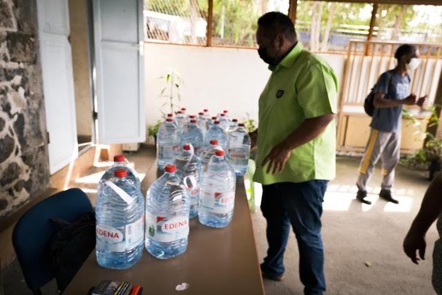 Le rétablissement de l'alimentation en eau est en cours sur les différents secteurs de Saint-Paul impactés par les coupures d'eau potable. La commune de Saint-Paul et La Créole ont procédé ce samedi 5 février 2022 à des distrution d'eau en bouteille aux "foyers isolés, fragiles, dans les écarts et toujours touchés par le manque d'eau" indique la maire saint-pauloise dans un communiqué (Photo: Mairie de Saint-Paul)