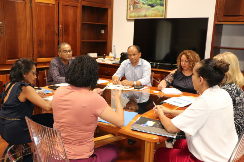 Ce mardi 6 septembre, Emmanuel Séraphin, le Maire de Saint-Paul, l'élue en charge des Affaires Scolaires, Nila Radakichenin, ont accueilli à l'Hôtel de Ville de Saint-Paul Sabrina Imazoute, la Directrice Générale de l'Ecole de la Deuxième Chance de La Réunion et Emmanuelle Deleflie, la présidente de l'association. Depuis plusieurs années, La Ville de Saint-Paul est une partenaire privilégiée de l'École de la Deuxième Chance de La Réunion (E2C Réunion). Nous publions ci-dessous le communiqué de la ville de Saint-Paul. (Photo : ville de Saint-Paul)