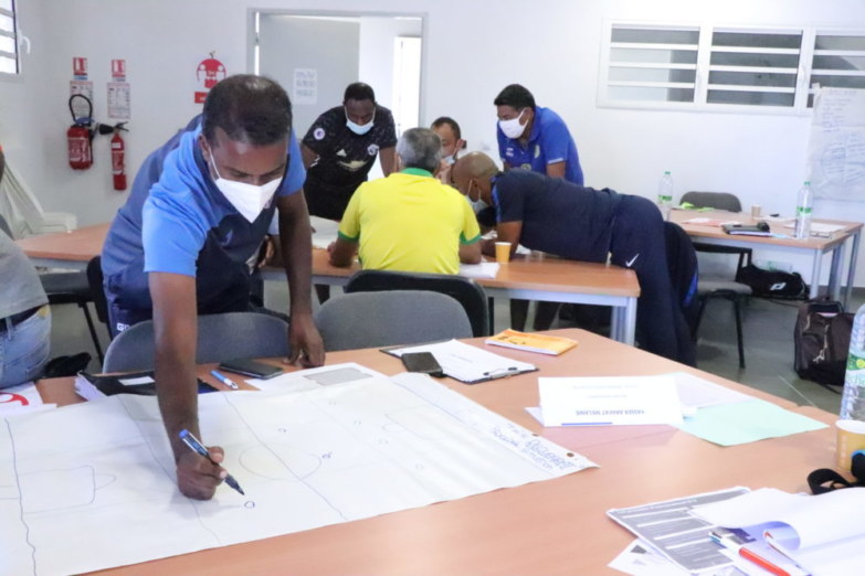 La Saint-Pauloise a accompagné une éducatrice et 19 éducateurs issu.e.s de 16 clubs de la ville lors d'une formation de quatre jours, au stade olympique Paul-Julius Bénard qui s'est terminé le vendredi 28 mai 2021. Au terme de ces quatre jours les éducateurs.ices chargé.e.s de l'entraînement des joueurs.euses de 11 à 17 ans ont pu apprendre à "mettre en place des entraînements et des jeux, construire des projets sportifs et mettre en sécurité les enfants" indique la ville. Cette formation proposée par le Football club de Saint-Paul en partenariat avec la commune et la Ligue réunionnaise de football a permis de "structurer et renforcer les liens entre la vingtaine de clubs de football de Saint-Paul, labellisée ville active et sportive" indique la mairie dont nous publions le communiqué ci-dessous. (Photos : mairie de Saint-Paul)