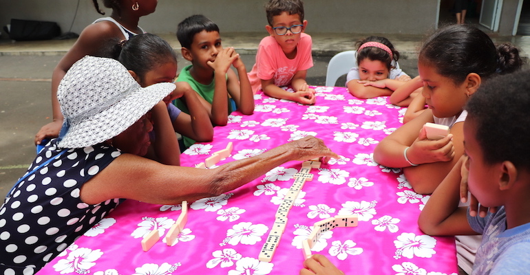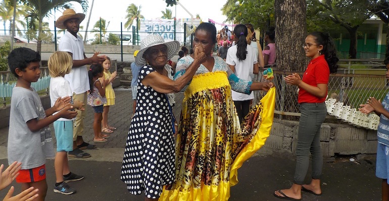Lors de la journée intergénérationelle, le regroupement rassemblait les élèves des écoles primaires de Louise-Siarane, des Chocas et de l’établissement du front de mer. Sans oublier les membres des associations de troisième jeunesse suivantes: Rue Jacquot, Cocotier, Jasmin, Lilas, Cytises, Corail de l’Hermitage, 3 CC, Jonquilles, Pensée d’Eau et les pensionnaires de l’Ehpad des Alizés.