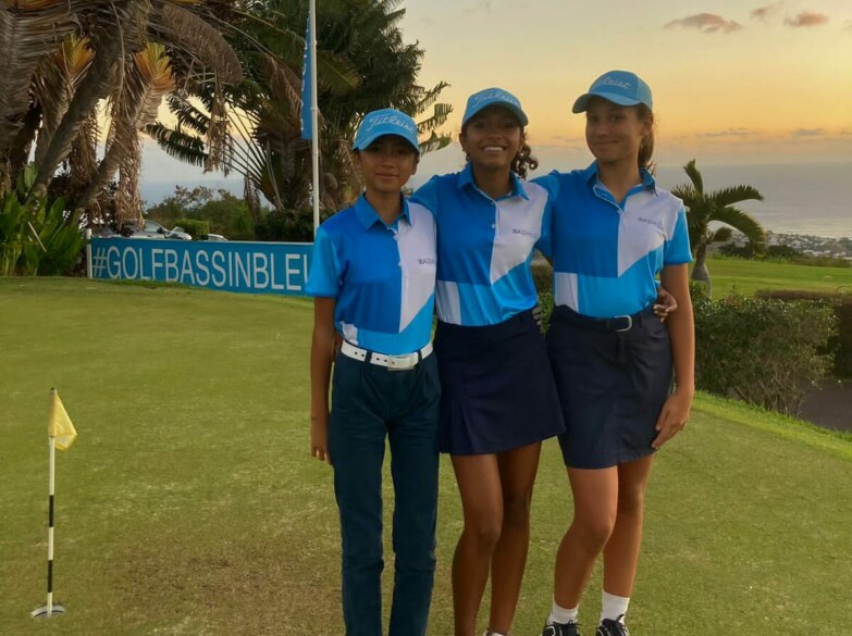 Une première expérience pour les trois jeunes filles : Laya Molly Vu Liu, Anna Morin et Louna Rose Petchy âgées respectivement de 12, 13 et 14 ans, qui sont entraînées par les Coachs du golf de bassin bleu Wilfried Le Biez, Ludovic Deplancke, les bénévoles et anciennes championnes Bénédicte Toumpsin et Marine De Palmas.