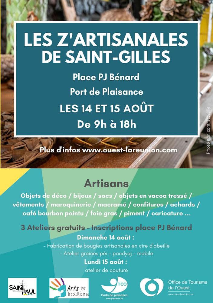 Le port de Saint-Gilles-les-Bains et la Place Paul-Julius-Benard vont s'animer le dimanche 14 et le lundi 15 août 2022 avec la deuxième édition des Z'Artisanales, organisées de 9 à 18 heures. Cette manifestation, qui a connu un franc succès lors de la première édition du 5 juin dernier, fait son grand retour sur le port de plaisance géré par le Territoire de la Côte Ouest. L'objectif de l'intercommunalité est de valoriser le savoir-faire péi, et particulièrement celui des artisans de la côte de l'Ouest. Nous publions ci-dessous le communiqué de la ville de Saint-Paul. (Photos : ville de Saint-Paul)
