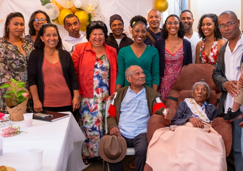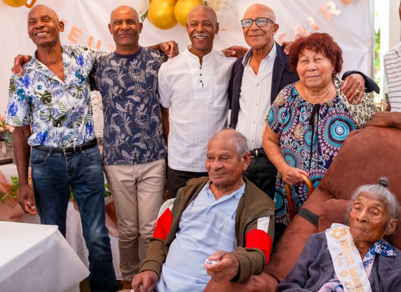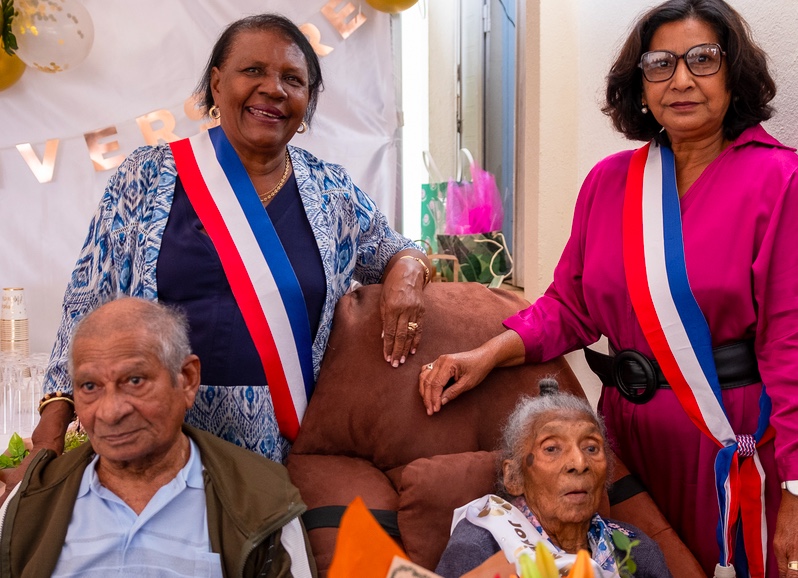 La ville de Saint-Paul compte une centenaire supplémentaire ! Léa Taristas a célébré son 100ème anniversaire, entourée de sa famille, de ses proches, de Marie-Léonie Boristhene, une amie qui a fêté ses 100 ans en mai et des élues Pascaline Chéreau-Némazine, Marie-Bernadette Mouniama-Cuvelie, Marie-Anick Floriant, à Saint-Gilles-les-Hauts ce dimanche 24 juillet 2022. Nous publions ci-dessous le communiqué de la ville de Saint-Paul. (photos : ville de Saint-Paul)