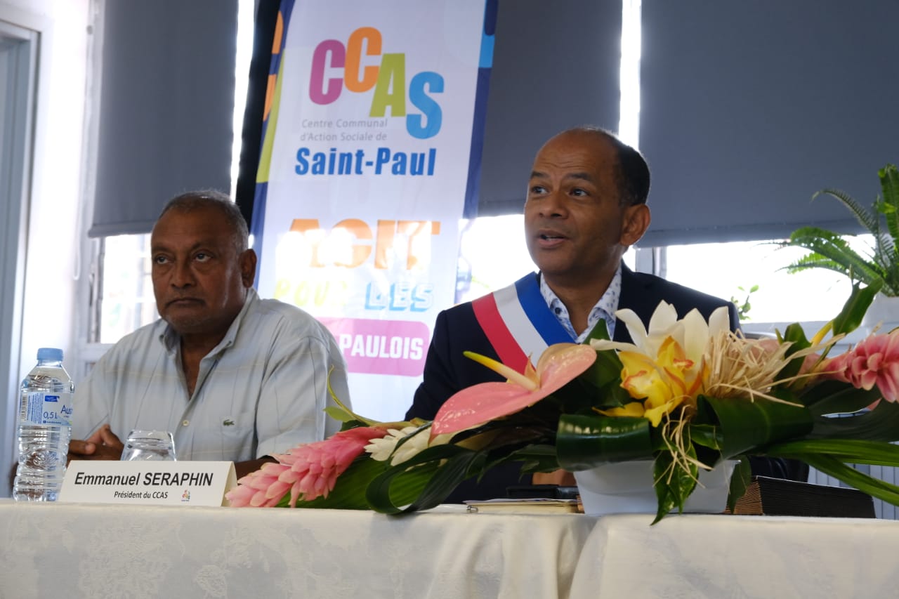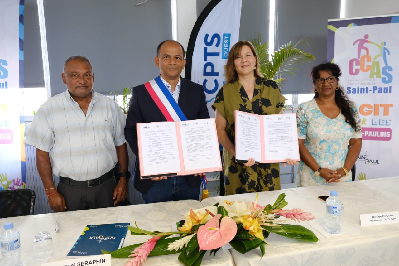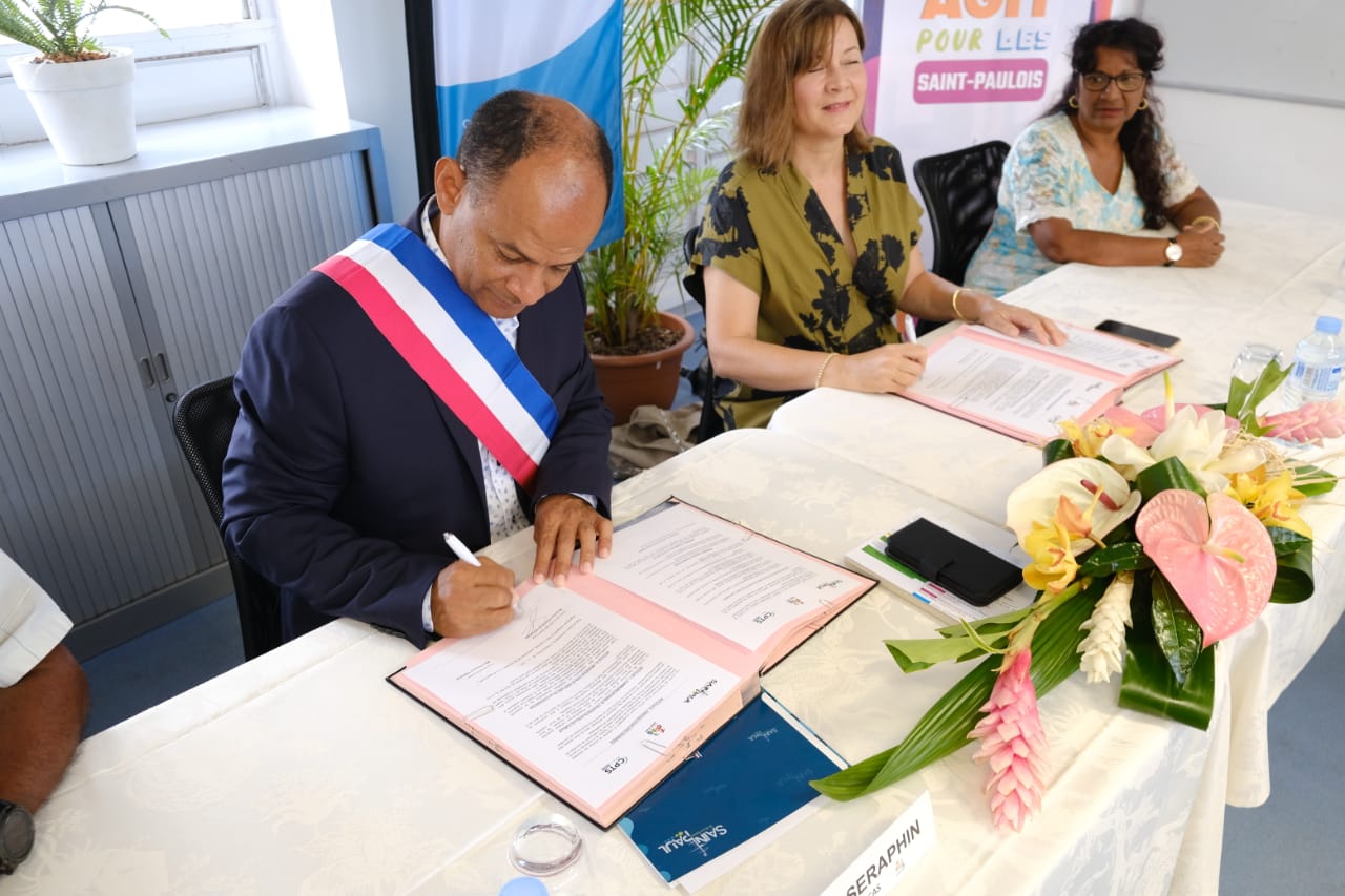 La signature s’est déroulée en présence des élu.e.s Jacqueline Carpin et de Dominique Voirama-Coutaye, vice-président du CCAS de Saint-Paul.