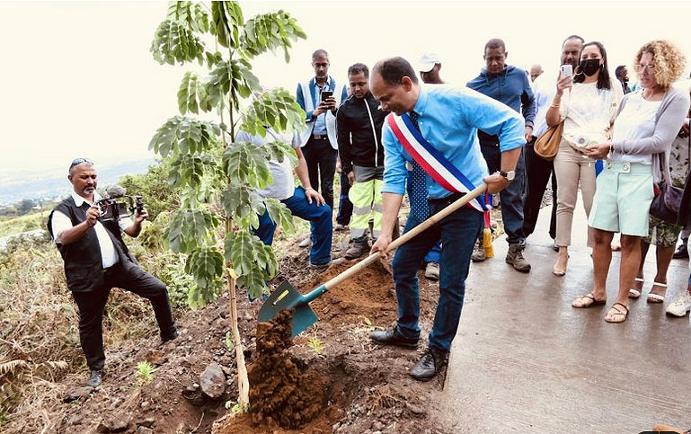 Découvertes pédagogiques avec le Syndicat du Sucre de La Réunion et le CRIJ Réunion (Centre Régional Information Jeunesse Réunion), dévoilement de plaques, riz-chauffé, plantation d’arbres endémiques, mise en valeur des produits du terroir, maloya et démonstration de coupe mécanique étaient au programme de cette matinée d’inaugurations entre les discours des officiels.
