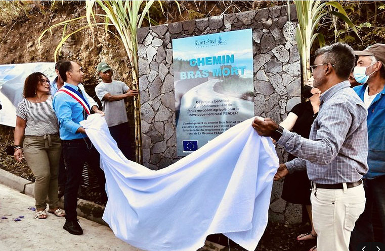 Les travaux de bétonnage des voies d'exploitations agricoles Chemin Bras-Mort et Chemin Furcy ont été terminés en septembre 2021. Ils ont été inaugurés ce vendredi 8 octobre en présence du maire saint-paulois Emmanuel Séraphin, de plusieurs élus , d'agriculteurs et de riverains des deux secteurs. Nous publions ci-dessous le communiqué de la commune Saint-Pauloise
