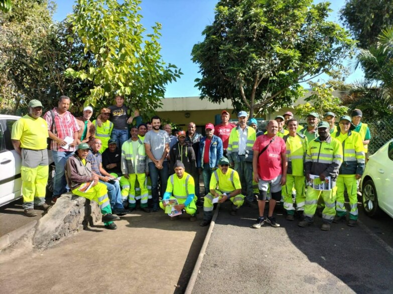 Depuis le début du mois de juillet, la Direction de la biodiversité et des ressources naturelles de la ville de Saint-Paul organise plusieurs formations de sensibilisation sur le tulipier du Gabon à destination des agents du service environnement des différents secteurs du territoire en présence de l'association AVE2M. L'objectif : apprendre à reconnaître cette espèce invasive aux fleurs grandes et voyantes, d'une couleur jaune-orange. Nous publions ci-dessous le communiqué de la ville de Saint-Paul. (Photo : ville de Saint-Paul)