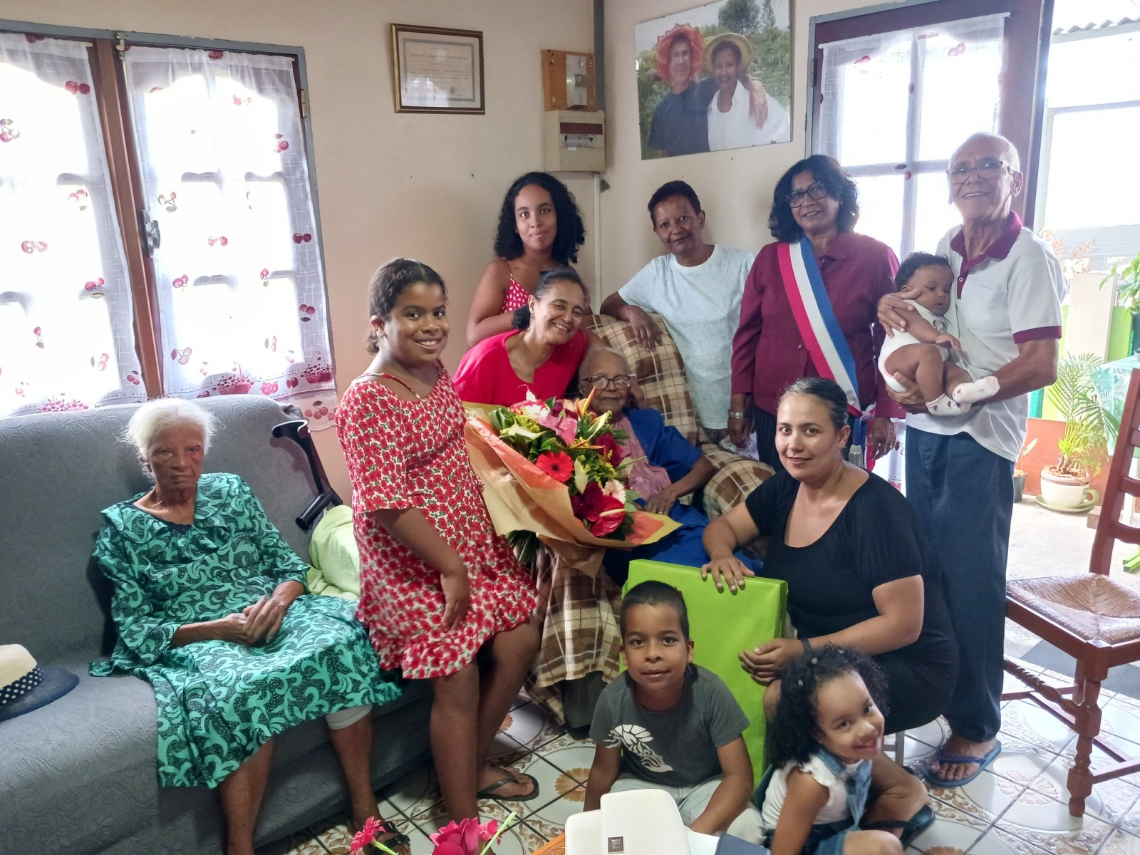 Ce dimanche 21 avril, la ville de Saint-Paul a célèbré l'anniversaire de Emilienne Noel, qui fêtait ses 101 ans. L'élue Bernadette Mouniama-Cuvelier était présente aux côtés de la centenaire aux 11 enfants, 59 petits-enfants, 29 arrières petits-enfants et 2 arrières arrières petits enfants, pour souffler cette 101e bougie. Nous publions le post de la ville de Saint-Paul ci-dessous (Photo : Mairie de Saint-Paul)