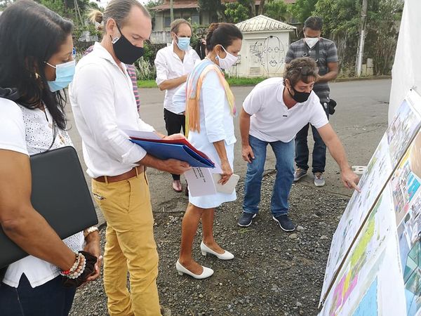 Les services de la mairie de Saint-Paul, l'Institut national de recherches archéologiques préventives (INRAP) accompagnés de l'atelier de l'architecture et de la direction des affaires culturelles-service de l'architecture, se sont réunis sur le site de Vue Belle, ce jeudi 22 avril 2021. Le site accueillera la future médiathèque de la Saline au premier semestre de l'année 2023. "Afin de sauvegarder les données du site de l'usine de Vue Belle pour en faire une interprétation, les fouilles archéologiques en cours sont les prémices d'une volonté de bâtir la future médiathèque de la Saline" indique la mairie de Saint-Paul. (Photo : mairie de Saint-Paul)