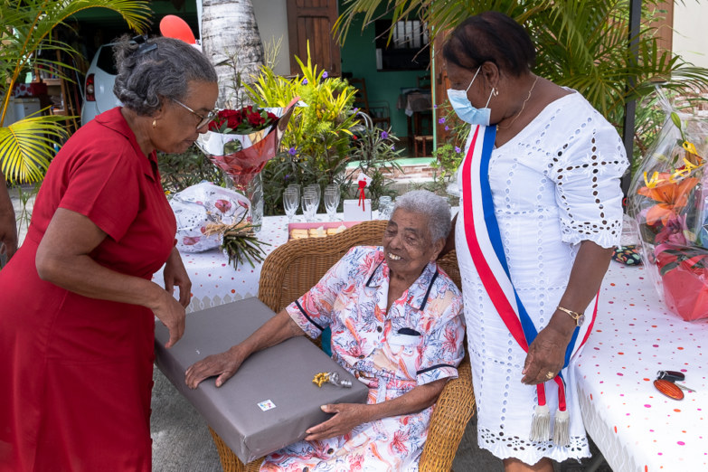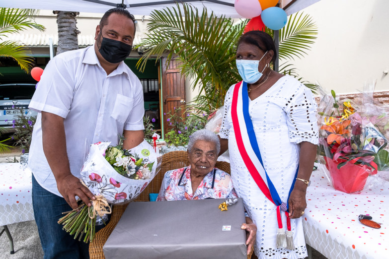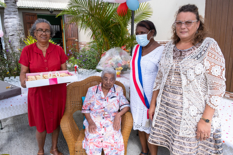 Le jeudi 3 juin, Thérèse Ariçis Cuvelier a fêté ses 100 ans à Bois-de-Nèfles. "Mère de cinq enfants, quatre petits-enfants, huit arrière-petits-enfants et deux arrière-arrière-petits-enfants, ses proches étaient présents pour ce jour si spécial. Heureuse d'être en famille, elle dit avoir "cette chance inégalée de profiter de ces moments"" indique la ville de Saint-Paul dont nous publions le communiqué ci-dessous. (photos : mairie de Saint-Paul)