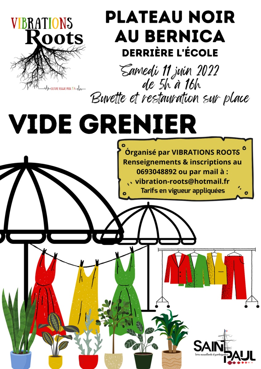 Vous pouvez encore vous inscrire pour vendre ce dont vous vous ne vous servez plus. Pour vous inscrire, contactez l’association Vibrations roots au 0693 04 88 92 ou par mail à vibration-roots@hotmail.fr.