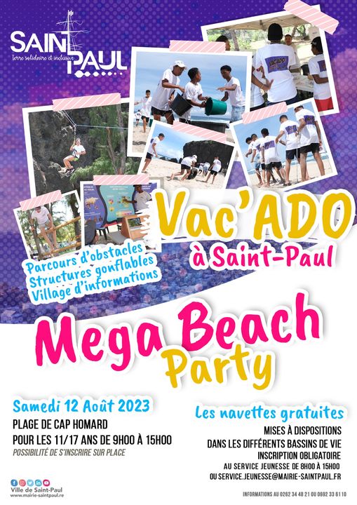 Tous les jeunes ayant participé au dispositif Vac’Ado ainsi que les adolescents de 11 à 17 ans de la ville de Saint-Paul sont attendus pour venir partager un moment festif et profiter de la fin de ces vacances avant d’entamer une nouvelle année scolaire.