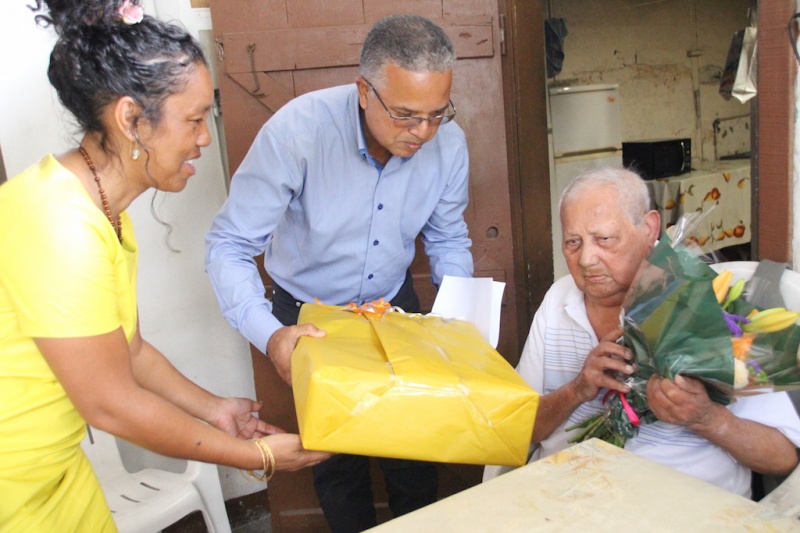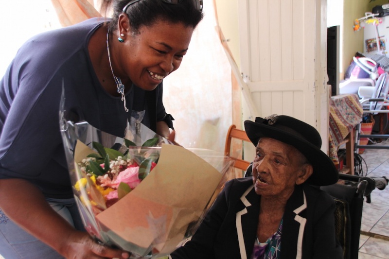 Dans le cadre des manifestations qui accompagnent ce contexte, la commune a mis à l’honneur ses centenaires. De Bellemène à Tan Rouge en passant par la Saline et la Grande Fontaine, des élus de la municipalité offrent de leur temps et des présents à ces gramounes qui les ont accueillis tout sourire.