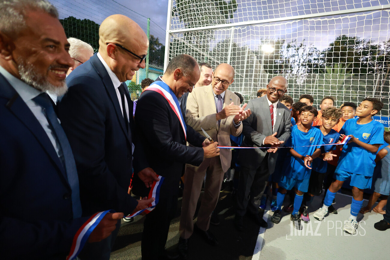 La ville de Saint-Paul a inauguré ce vendredi 24 avril 2026 le mini-terrain Fifa Arena, au Stade de la Palmeraie. Un terrain pour pratiquer le football à cinq, qui fait partie d'un projet de construction de 1.000 Fifa Arenas à travers le monde d’ici 2030. Des représentants de la Fifa, de la Fédération française de football et des acteurs du football local étaient présents pour l'occasion. (Photo Stephan Laï-Yu)