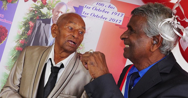 André Ramassamy - Ponin a fêté ses 100 ans ce dimanche et a été fait citoyen d'Honneur de la Ville de Saint-Paul, par le Maire Joseph Sinimalé. Une grande partie de la famille s'est retrouvée à son domicile pour célébrer ce double événement. (crédits : mairie de Saint-Paul)
