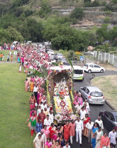 En signe de purification de leur âme et de leur corps, les fidèles se sont réunis, vêtus de couleurs chatoyantes et portant des fruits et fleurs en offrande. Plusieurs fois dans l'année, il est possible d'assiter au Cavadee dans kes différentes communes de l'île.