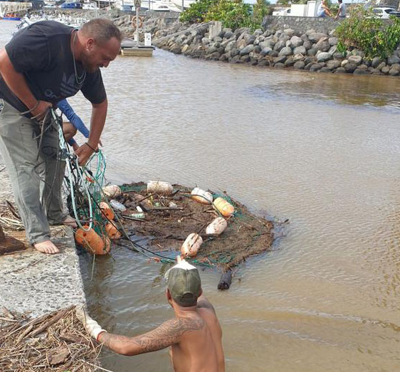 Au port de Saint-Pierre l'heure était au nettoyage ce samedi matin 5 février 2022. En frôlant La Réunion cyclone intense Batsirai a aussi provoqué l'obstruction de l'enceinte portuaire par des déchets de toute nature. Des pêcheurs, des employés communaux et des membres de la SNSM (Société nationale de sauvetage en mer) ont procédé au nettoyage en surface du port. Le président de la Civis et maire de Saint-Pierre, Michel Fontaine, était présent sur place au côté des pêcheurs (Photo : Civis)