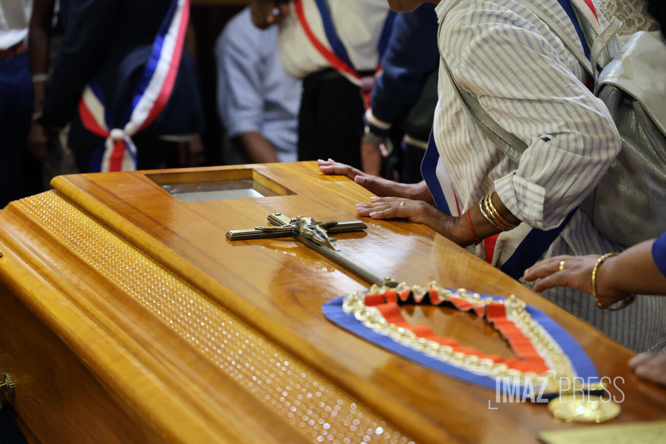 Vers 18h45, le cercueil a franchi les portes de la mairie, porté au milieu d’une haie d’honneur formée par ses proches, les élus mais aussi la population venue dire adieu à celui qui aura dirigé pendant 24 ans la ville de Saint-Pierre.