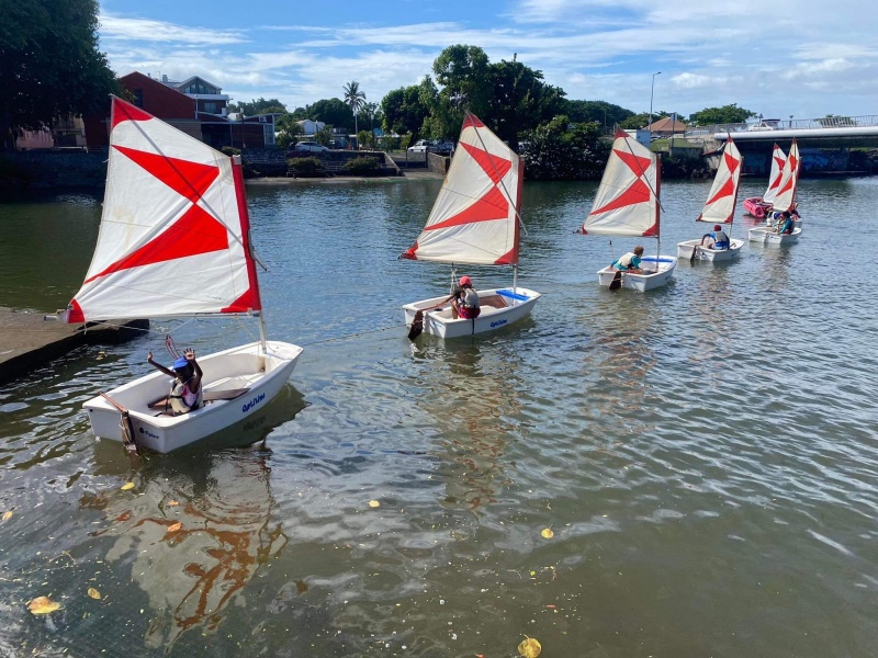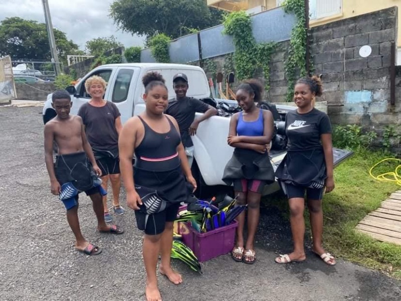 Dans le cadre du projet d'intégration par le sport, en partenariat avec l'ANSP (association sautique de Saint-Pierre Réunion) Voile et plongée et Canoë kayak sud, 90 enfants des QPV (quartiers de la politique de la ville) de Saint-Pierre ont efectuéune sortie en mer. Baptême de plongée avec bouteille d'oxygène), initiation à la voile et au kayak étaient au programme (Photo D.R)