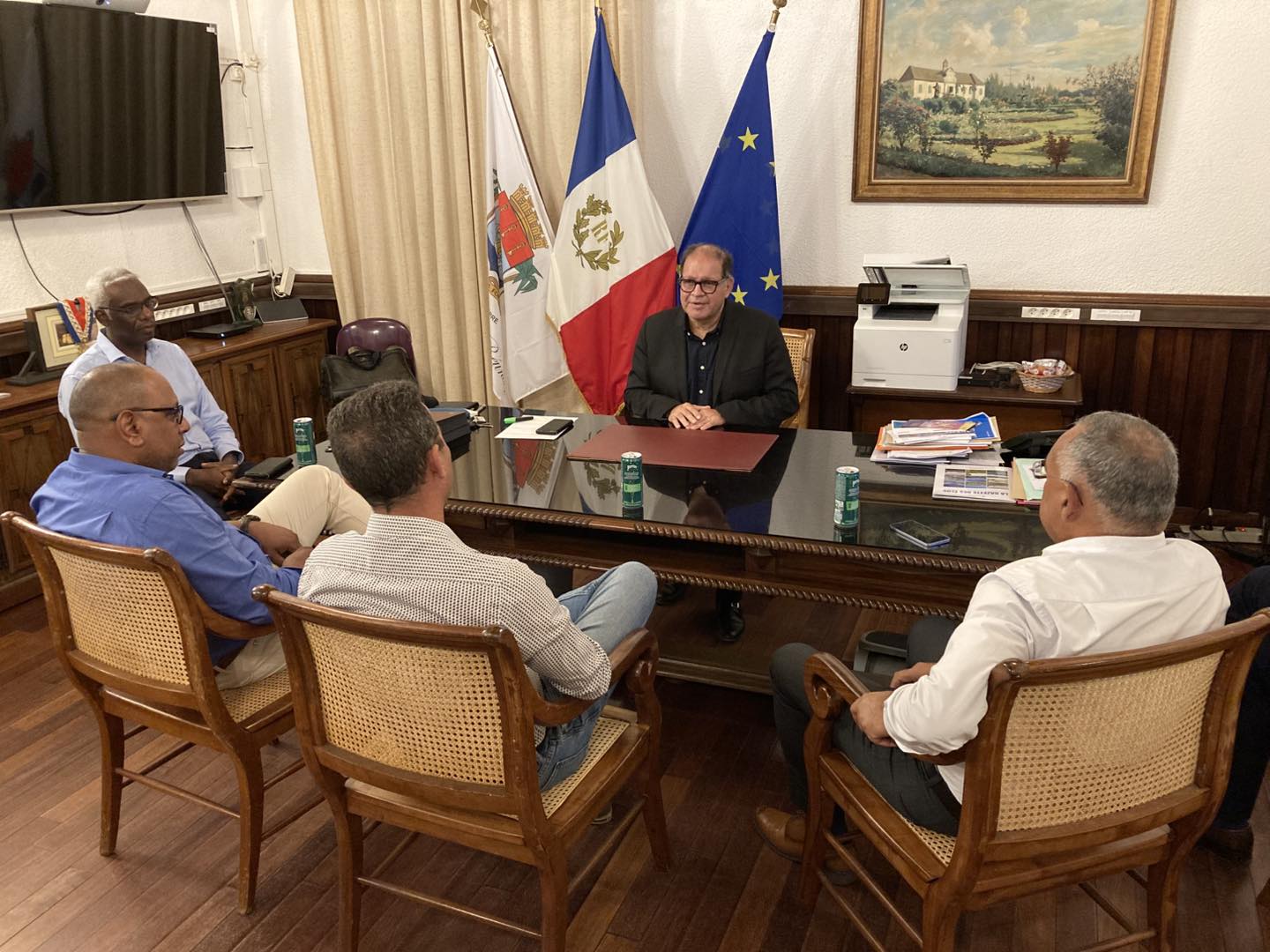 Le maire David Lorion a rencontré le 29 août 2025, les présidents de la chambre d’agriculture, de la chambre de métiers et de l’artisanat et de la CCI Réunion pour renforcer la coordination entre la commune et les acteurs économiques. Parmi les pistes évoquées : les chartes d’insertion liées à la rénovation du quartier de la Ravine Blanche, pour rapprocher les jeunes du monde du travail, et la sanctuarisation des meilleures terres agricoles afin de développer les filières agroalimentaires. Nous publions le post de la ville de Saint-Pierre ci-dessous. (Photos : ville de Saint-Pierre).