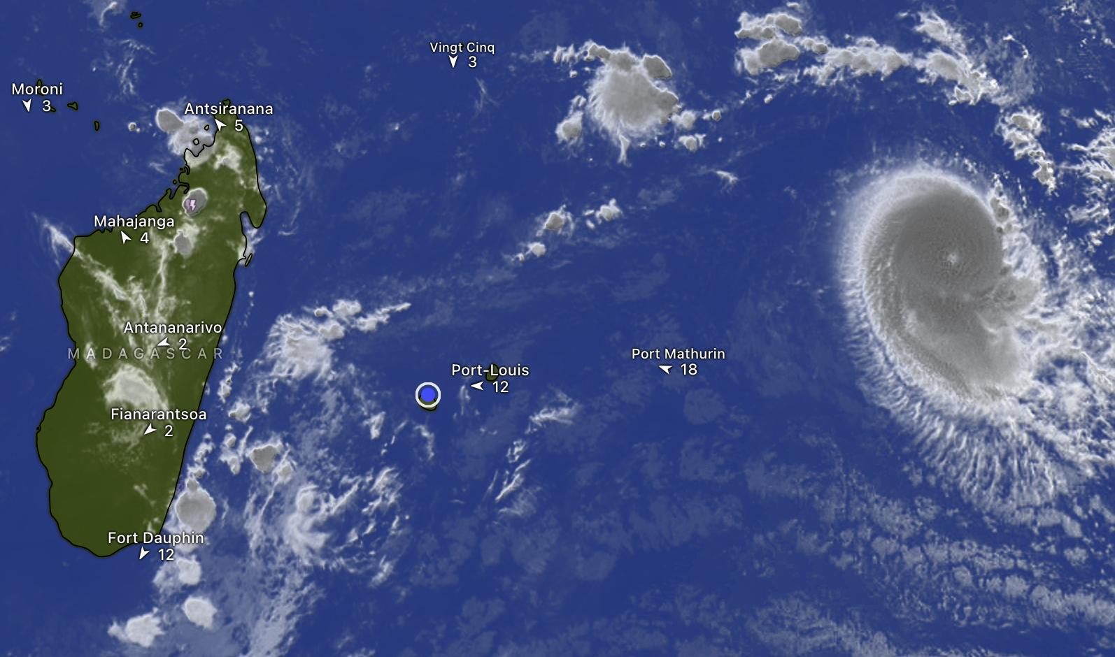 - Le cyclone tropical intense Dudzai à 1.775 km de La Réunion -