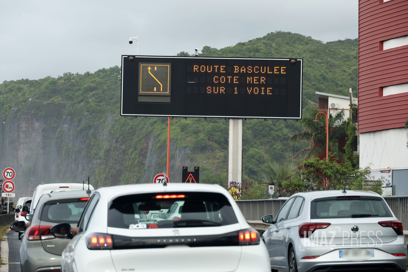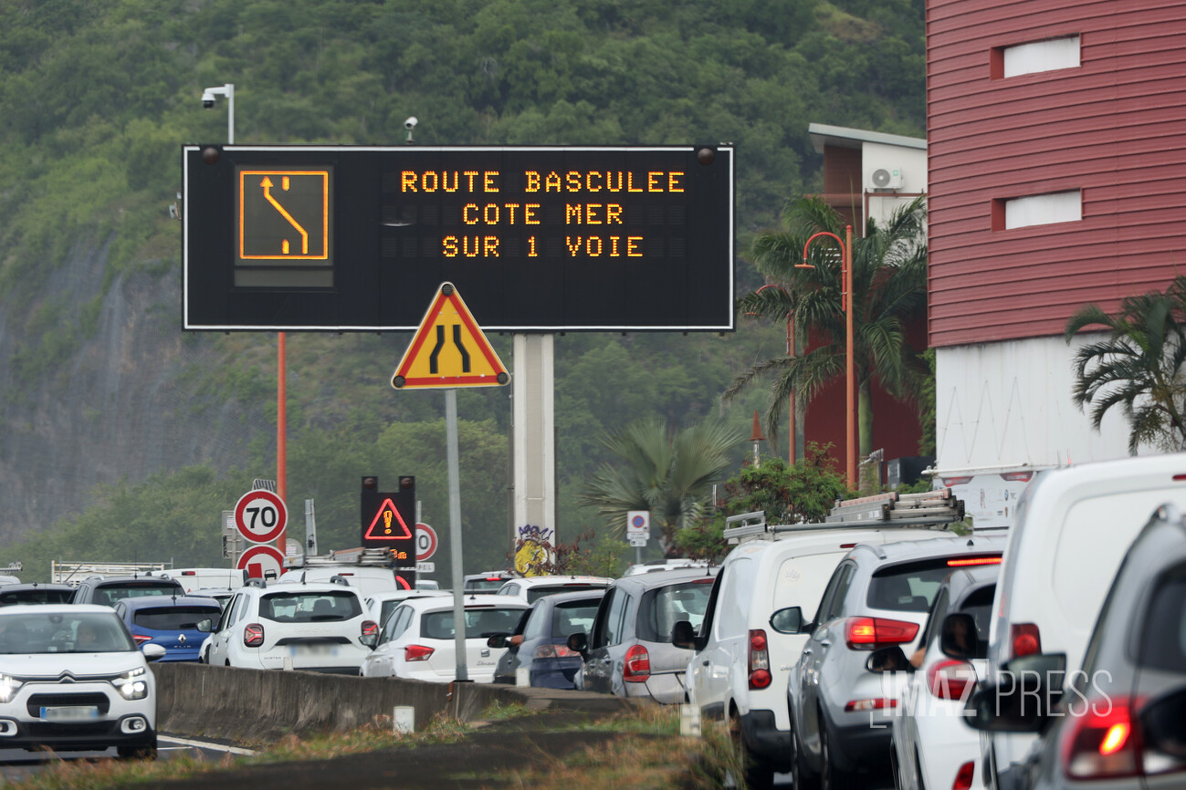 Pour rappel, la route du littoral est basculée sur les voies de la chaussée côté mer entre la Grande Chaloupe et La Possession. La réouverture en 4 voies sera décidée par la direction régionale des routes en fonction de l'amélioration des conditions météo.
