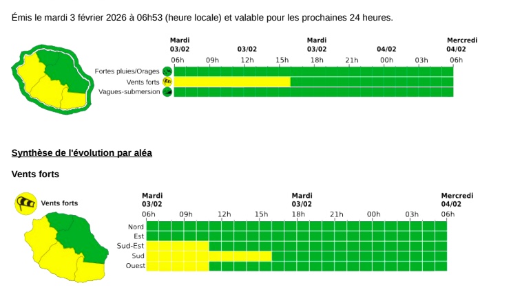 - Vigilance jaune vents forts sur une partie de La Réunion -