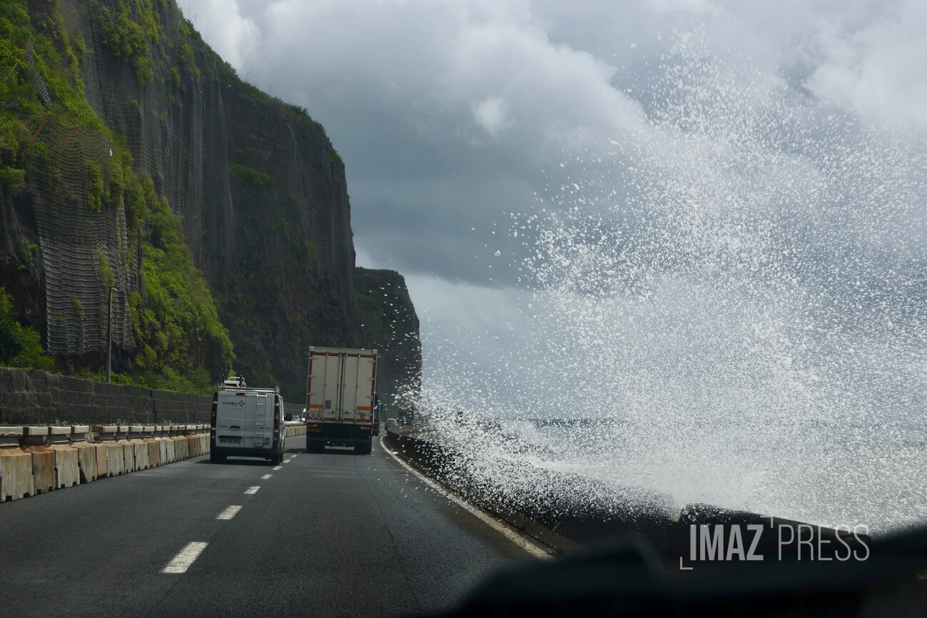 Suite aux dernières fortes précipitations, sur la RN1 Route du Littoral, la circulation est basculée sur les voies de la chaussée côté mer entre la Grande Chaloupe et La Possession.