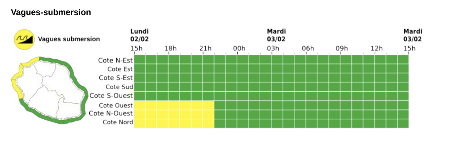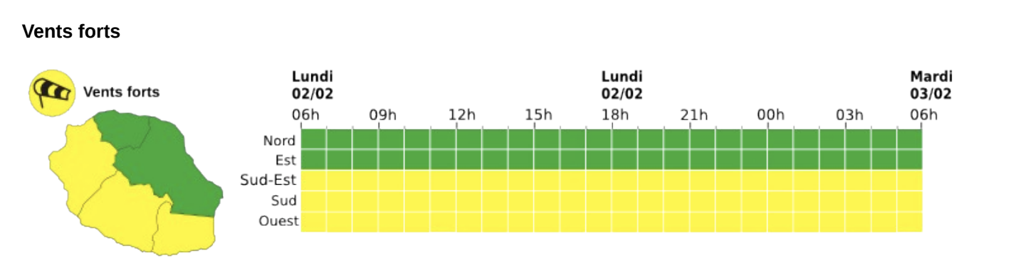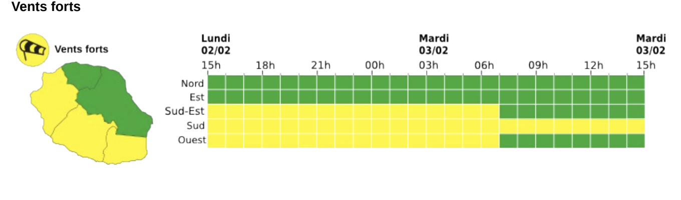 Une vigilance vents forts est émise dans l'ouest, le sud et sud-ouest et sud de l'île.