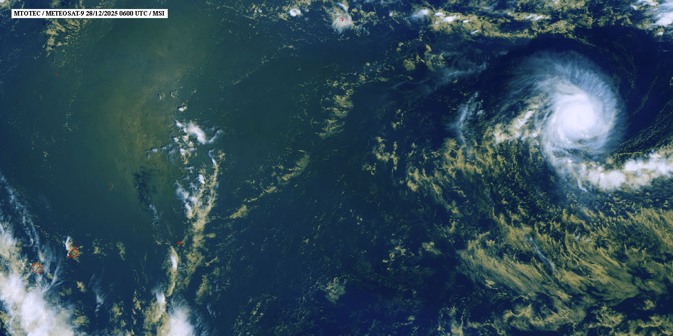 (Actualisé) Le cyclone tropical Grant évolue ce dimanche 28 décembre 2025 sur l'est du bassin. Il devrait continuer à s'intensifier d'ici lundi sur un rythme devenant plus rapide, atteignant probablement le stade de cyclone tropical intense entre lundi et mardi. Le système se trouve à 3.175 à l'est de La Réunion et se déplace à une vitesse de 19km/h vers l'ouest-sud-ouest (Photo : mtotec)