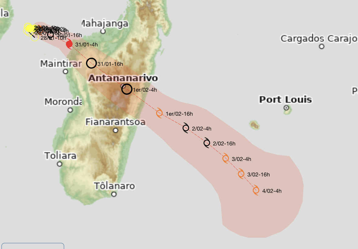 Position le 30 janvier à 04 heures locales : 15.6 Sud / 42.4 Est.