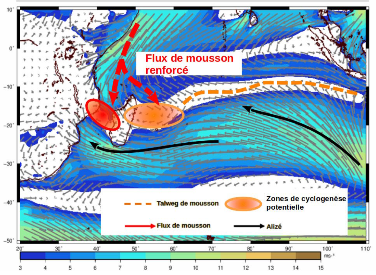Selon la climatologie du bassin ouest de la zone océan Indien, les mois de janvier et février constituent le cœur de la saison cyclonique, chacun comptant plus de deux systèmes observés en moyenne.