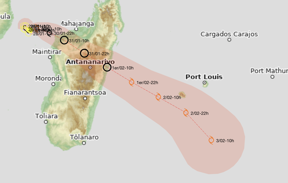 Centre positionné le 30/01 à 16h locales, par 16.0 Sud / 42.9 Est.