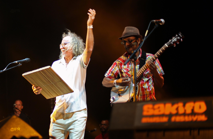Il fallait du lourd pour chauffer la place avant l'arrivée de Stromae à 22h30 sur la scène du Salahin. C'est pourquoi était prévue l'une des curiosités de ce Sakifo 2014, le Congolais Jupiter et son groupe Owkess international. Mais ces derniers ayant dû décliner l'invitation en raison d'un problème de visa, les organisateurs se sont tournés vers les valeurs sûres : Danyel Waro et Apolonia. Les deux artistes qu'on ne présente plus ont assuré le show et se sont unis pour présenter un spectacle original mariant avec bonheur séga et maloya. Percussions, accordéon, banjo traditionnel et basse acoustique étaient au rendez-vous pour réchauffer l'atmosphère et réjouir les impatients...