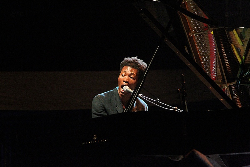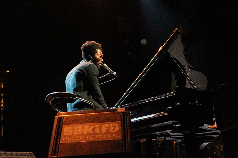 Benjamin Clementine, c'est l'histoire d'un homme à la voix d'or découvert dans un métro parisien et qui se retrouve ce samedi soir au Sakifo. L'enfant de Londres, dont le timbre de voix est reconnaissable parmi mille, a conquis la foule réunie dans la Poudrière avec son piano. D'ailleurs, ce n'est pas pour rien que le jeune homme a remporté le prix "Révélation scène" aux dernières Victoires de la musique.