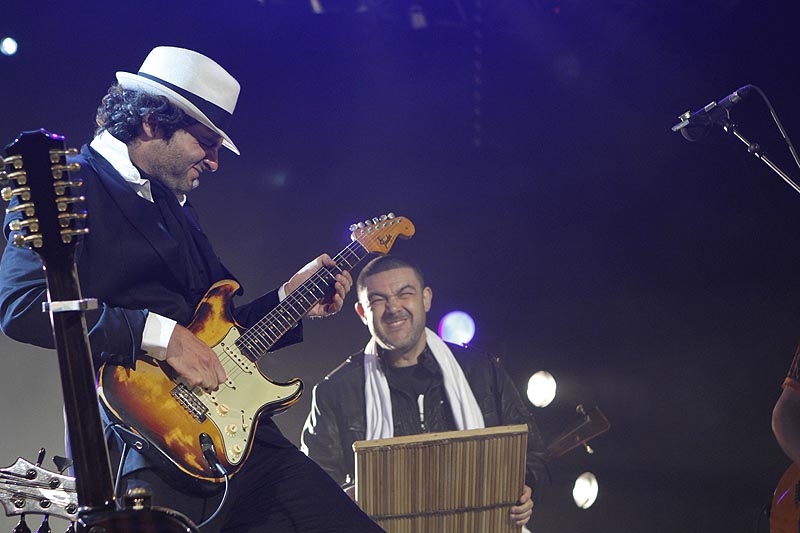 Cela faisait environ une heure que Gilbert Pounia et ses dalons de Ziskakan enchaînaient les morceaux. "Madagascar", "Batou fou", "Banjara"... les quelque 4 000 personnes qui se pressent devant le podium sont à fond dans le tempo lancé par le chanteur.Puis vint "Bonbon". Alex a suivi rappant ses mots. Ceux qui auraient pu être ceux de Zizkakan il y a encore quelques années. Il est question de défense de l'identité réunionnaise, de reconnaissance de la dignité de l'homme réunionnais. Et M est arrivé. Sans ses "oreilles" de Mickey mais avec sa guitare magique.
