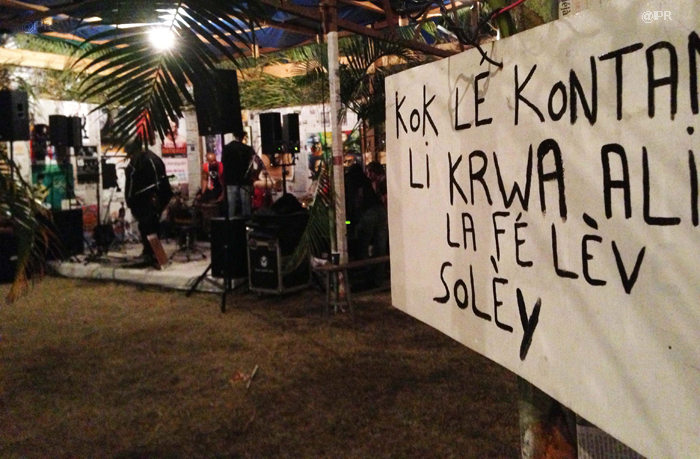 "Kok lé kontan, li krawa ali la fé lèv solèy" proclame une pancarte accroché à l'intérieur de la "Salle verte", temple du maloya la kour. "Lès ali krawa, amoin osi mi krawa amoin mèm la fé maloya, alé war sé maloya la fé amoin" a commenté, plein d'humour, l'un des musiciens de Tiloun présent sur place