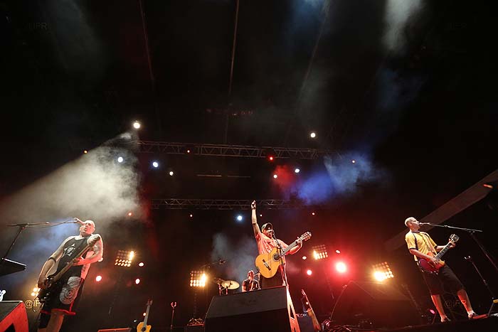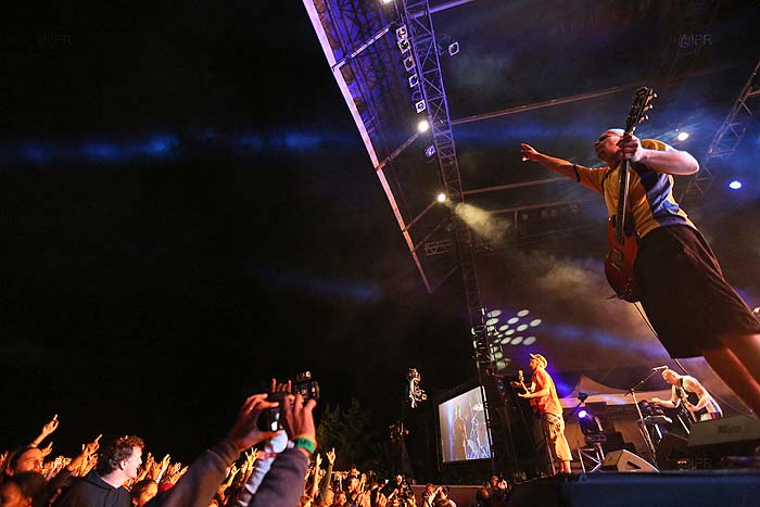 Avec Manu Chao, les choses commencent toujours très vite. Avec ses trois acolytes, il est à peine arrivé sur scène que l'on sait déjà que l'ambiance va être déjantée. Elle l'est effectivement. "Sakifo koman i lé ?" demande le chanteur. "Waouuh" répond la foule. La suite est une conversation en tête à tête la foule et Manu Chao bien soutenu par ses musiciens, ses complices.
