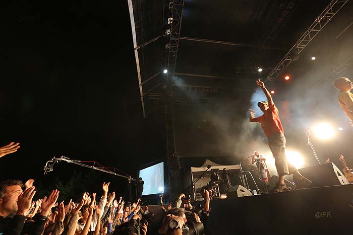 Le public saute, crie, reprend tous les refrains. Les morceaux s'enchainent, le style est sûr, mâtiné de rock et de reggae avec une pointe de latino : Manu Chao quoi