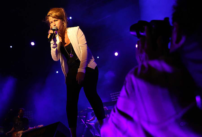 Sur scène, blouson blanc et jupe courte sur collants noirs, la chanteuse assure le spectacle. Le public a chaviré depuis très longtemps, il a bien réussi sa ruée vers Selah Sue.